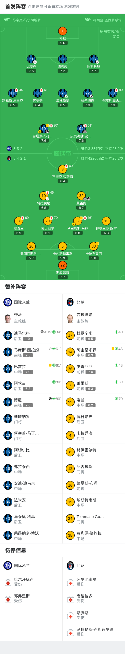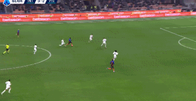 第45分钟,皮奥禁区头球破门,国米连追三球3-2反超比萨