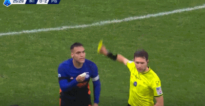 第26分钟,劳塔罗争抢皮球犯规,裁判对其出示黄牌